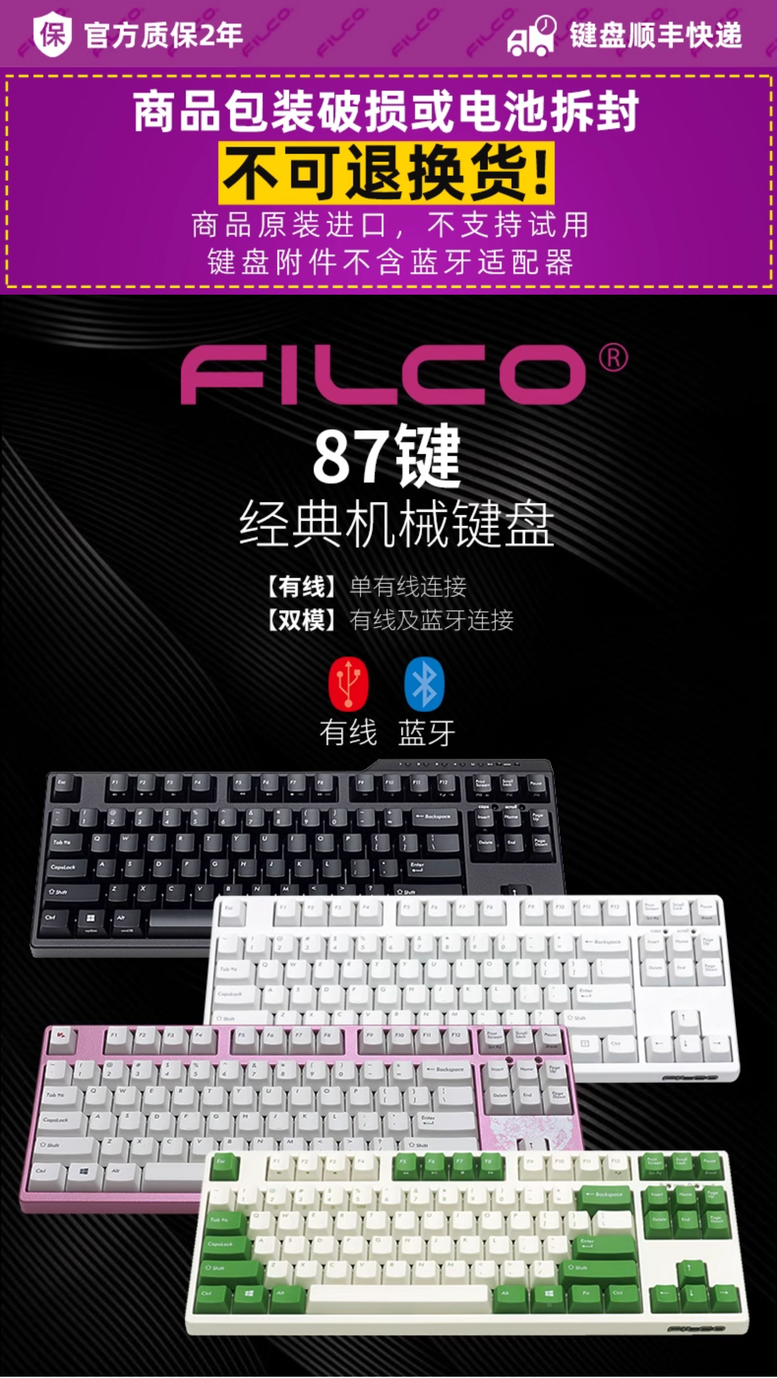 首页 > 电脑周边 > 斐尔可FILCO圣手三代忍者87键蓝牙有线双模3X粉色奶酪绿机械键盘