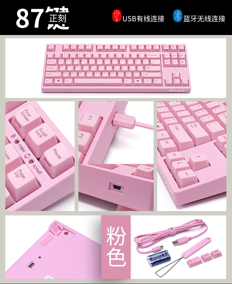 • 斐尔可FILCO圣手三代忍者87键蓝牙有线双模3X粉色奶酪绿机械键盘