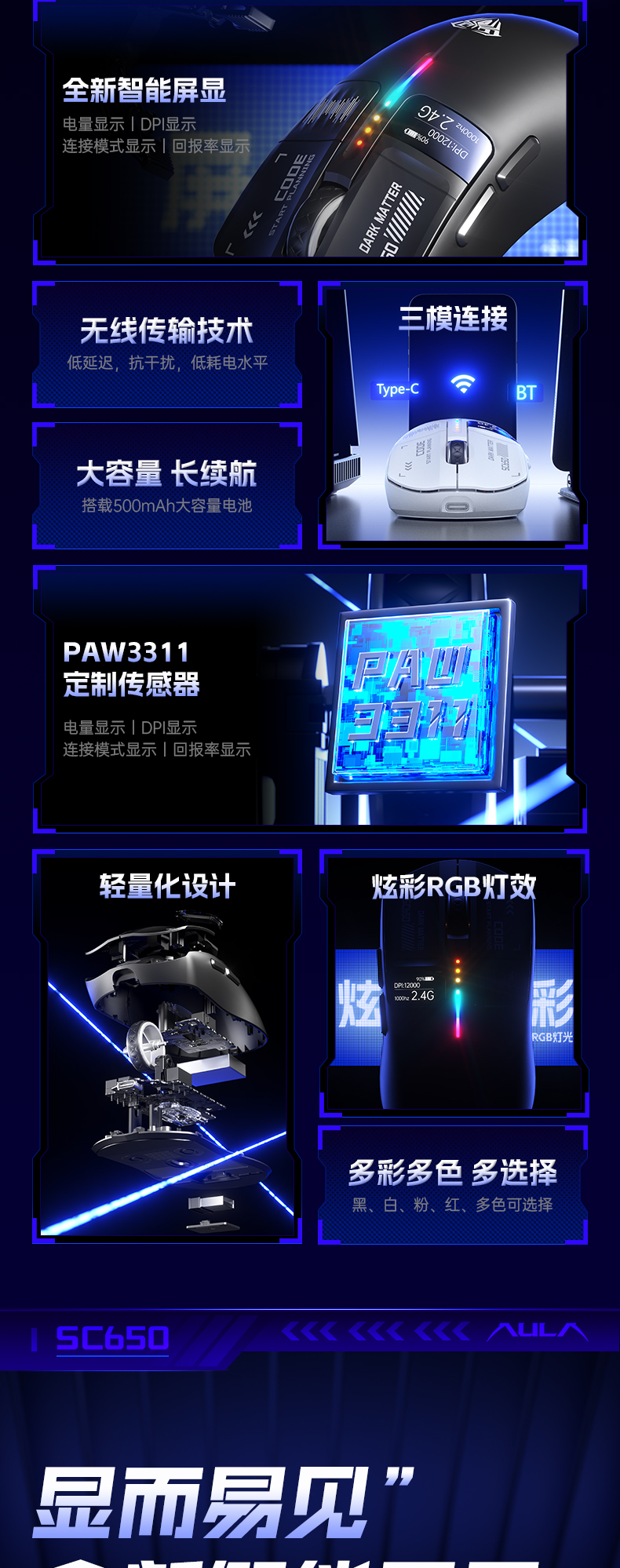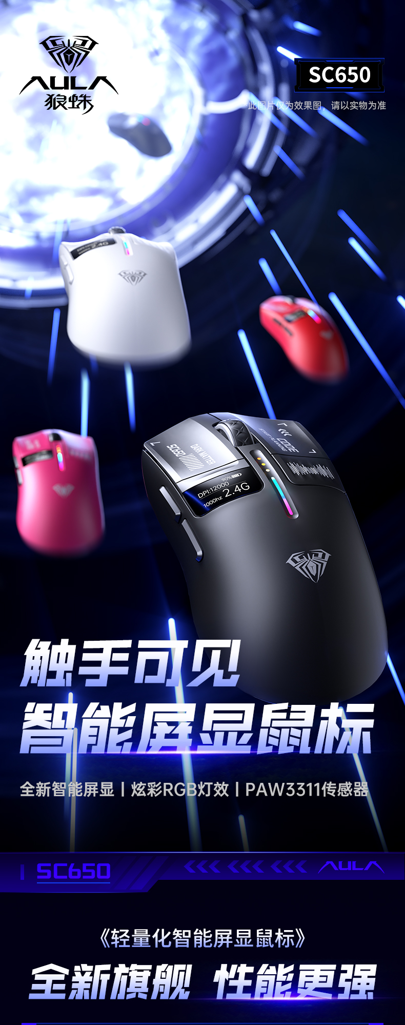狼蛛SC650无线鼠标蓝牙有线三模办公电竞游戏机械笔记本台式滑鼠