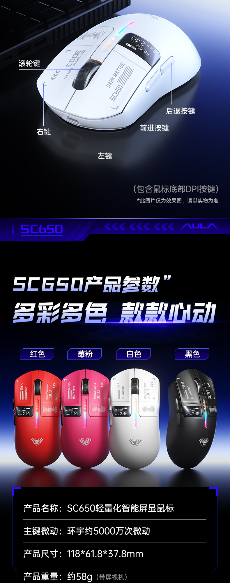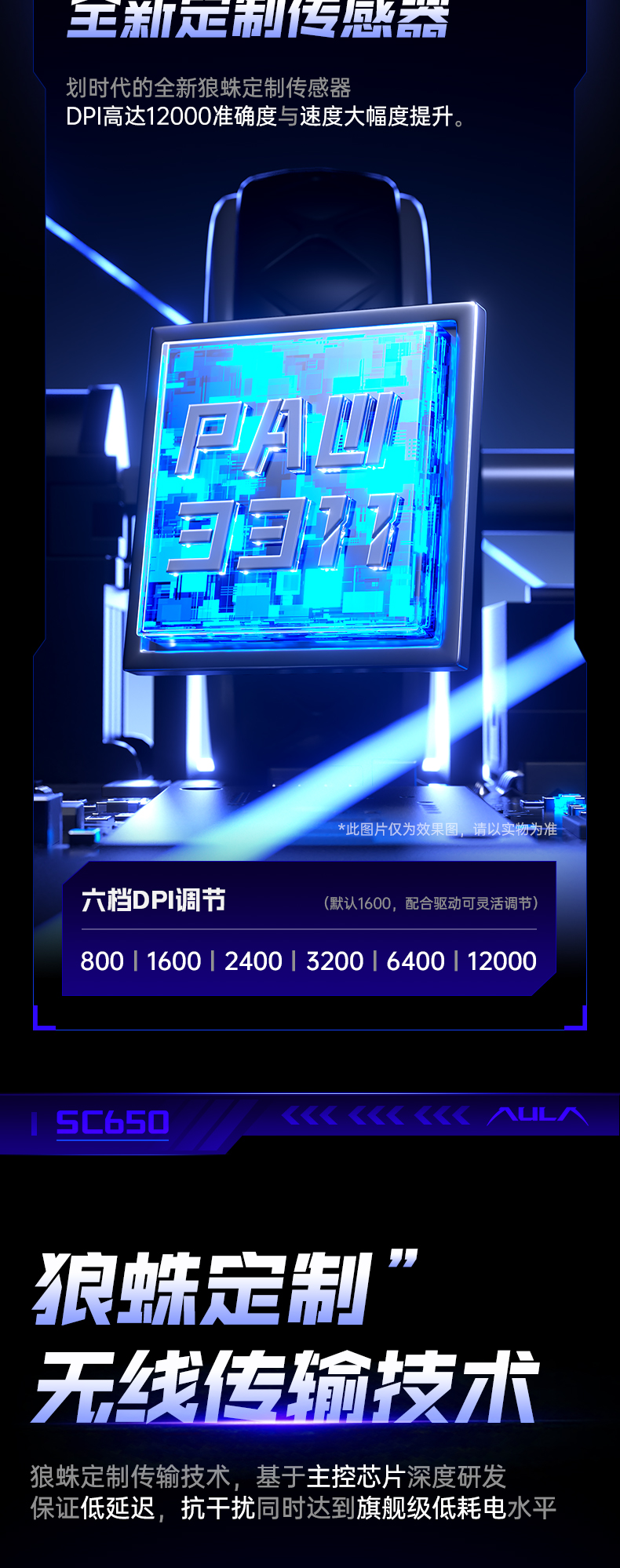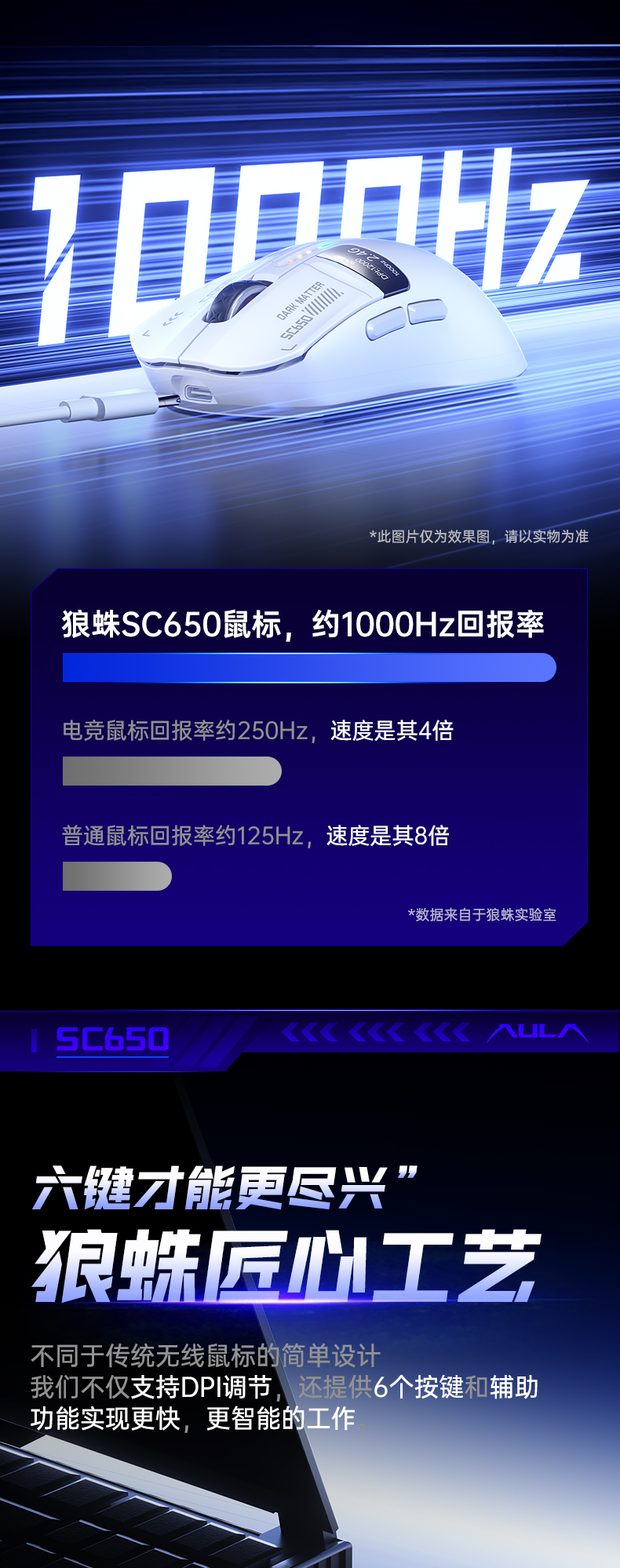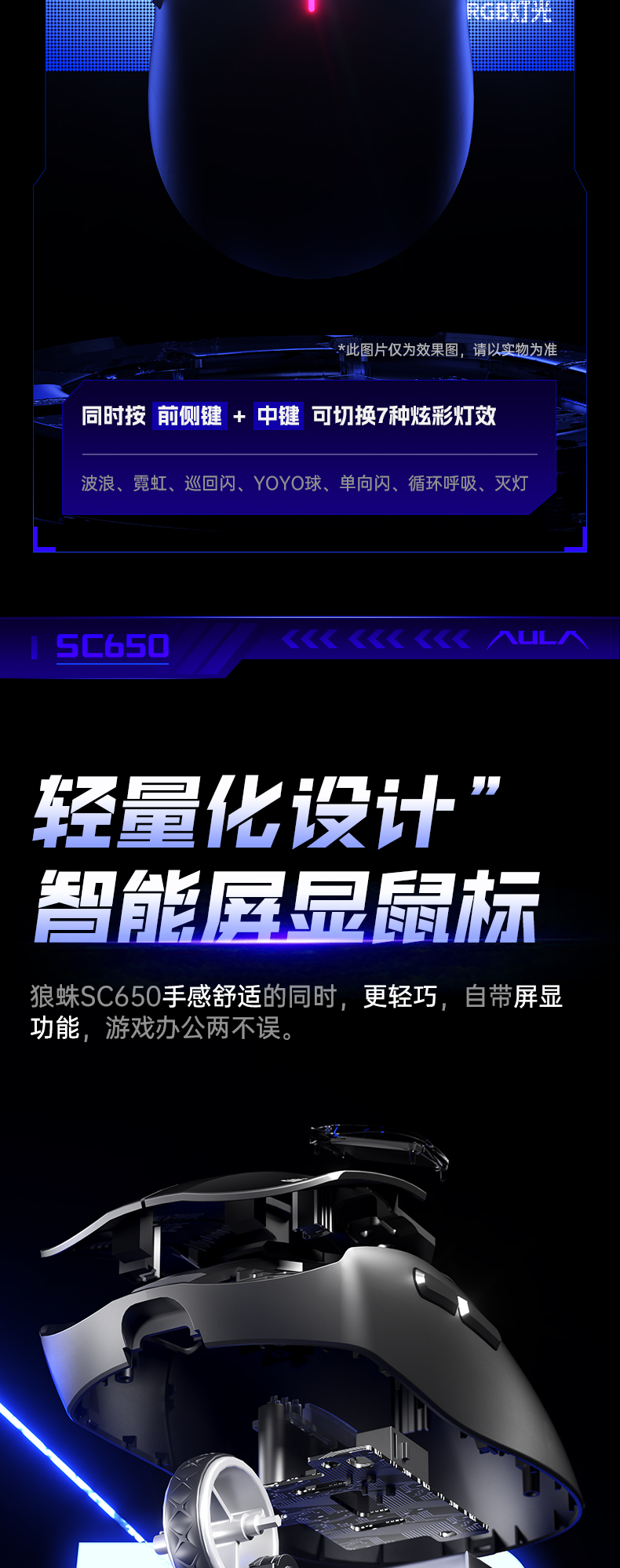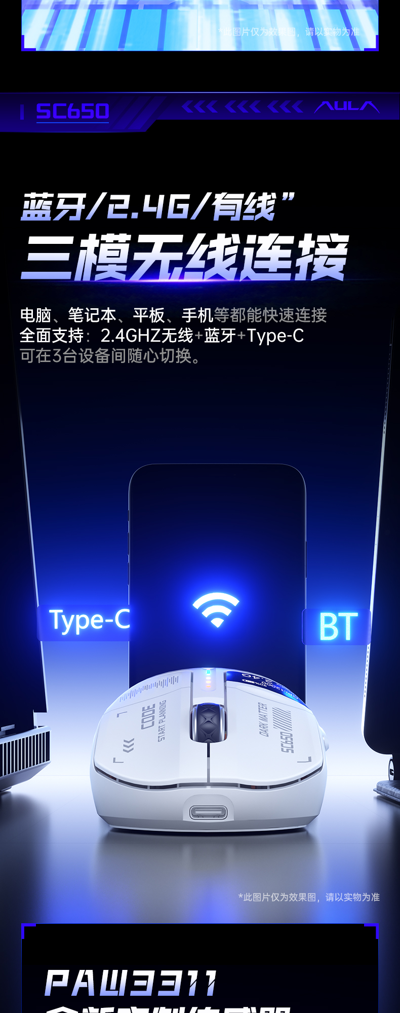 • 狼蛛SC650无线鼠标蓝牙有线三模办公电竞游戏机械笔记本台式滑鼠