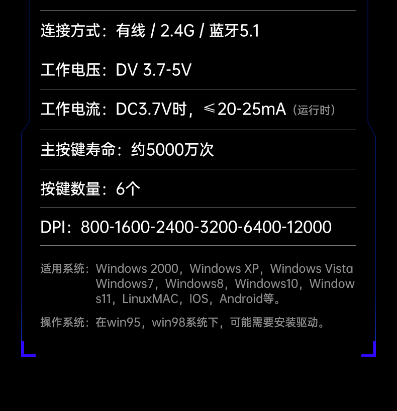 【黑色】无线三模屏显版-赠防滑贴-12000DPI