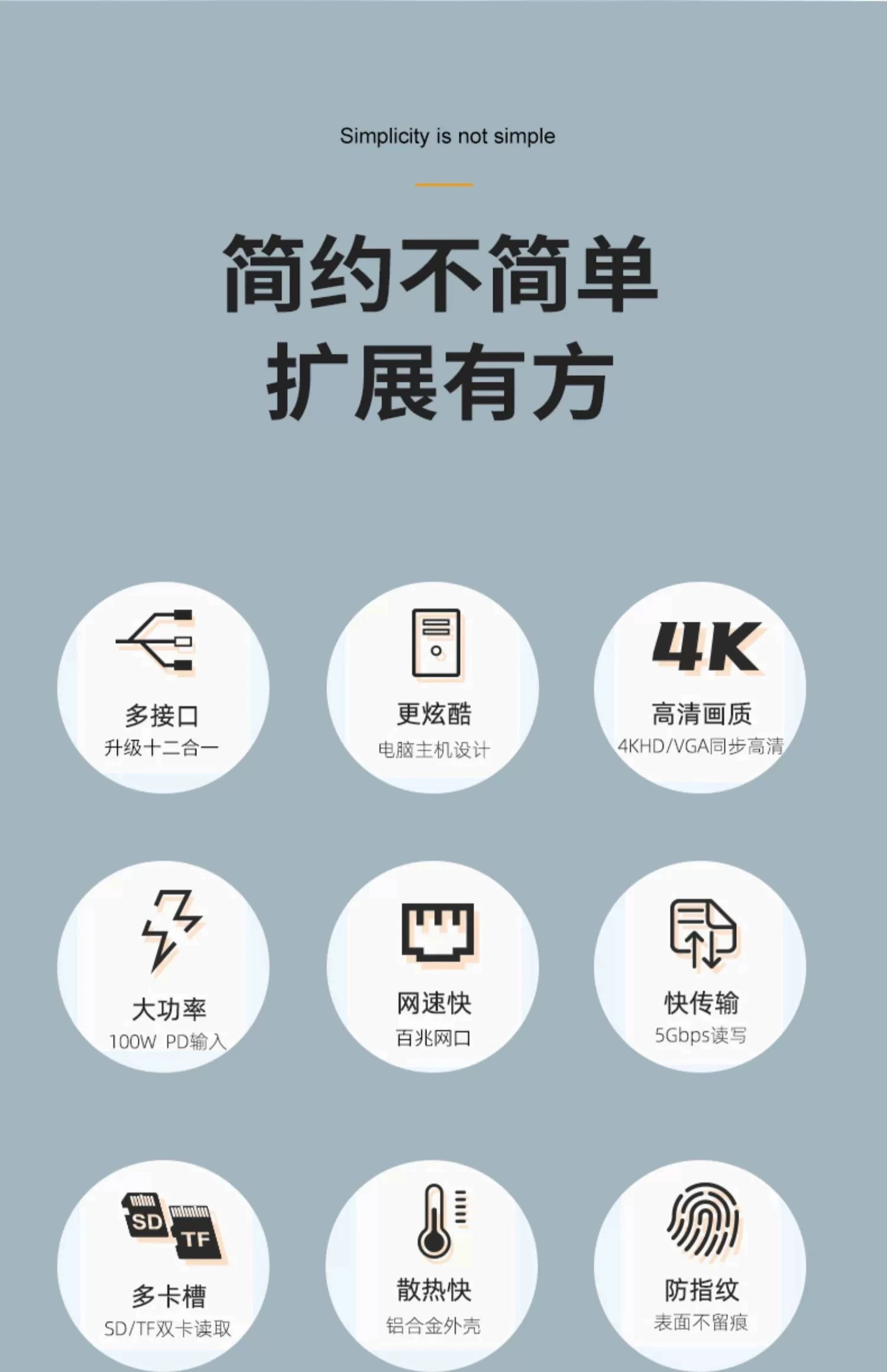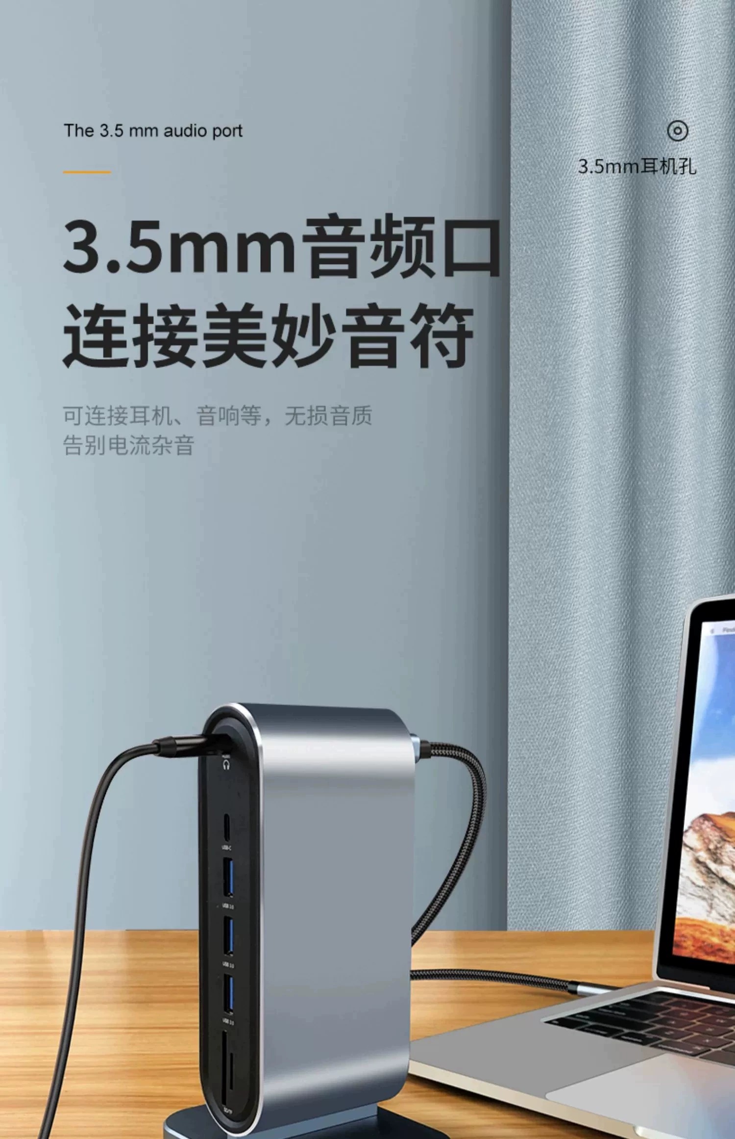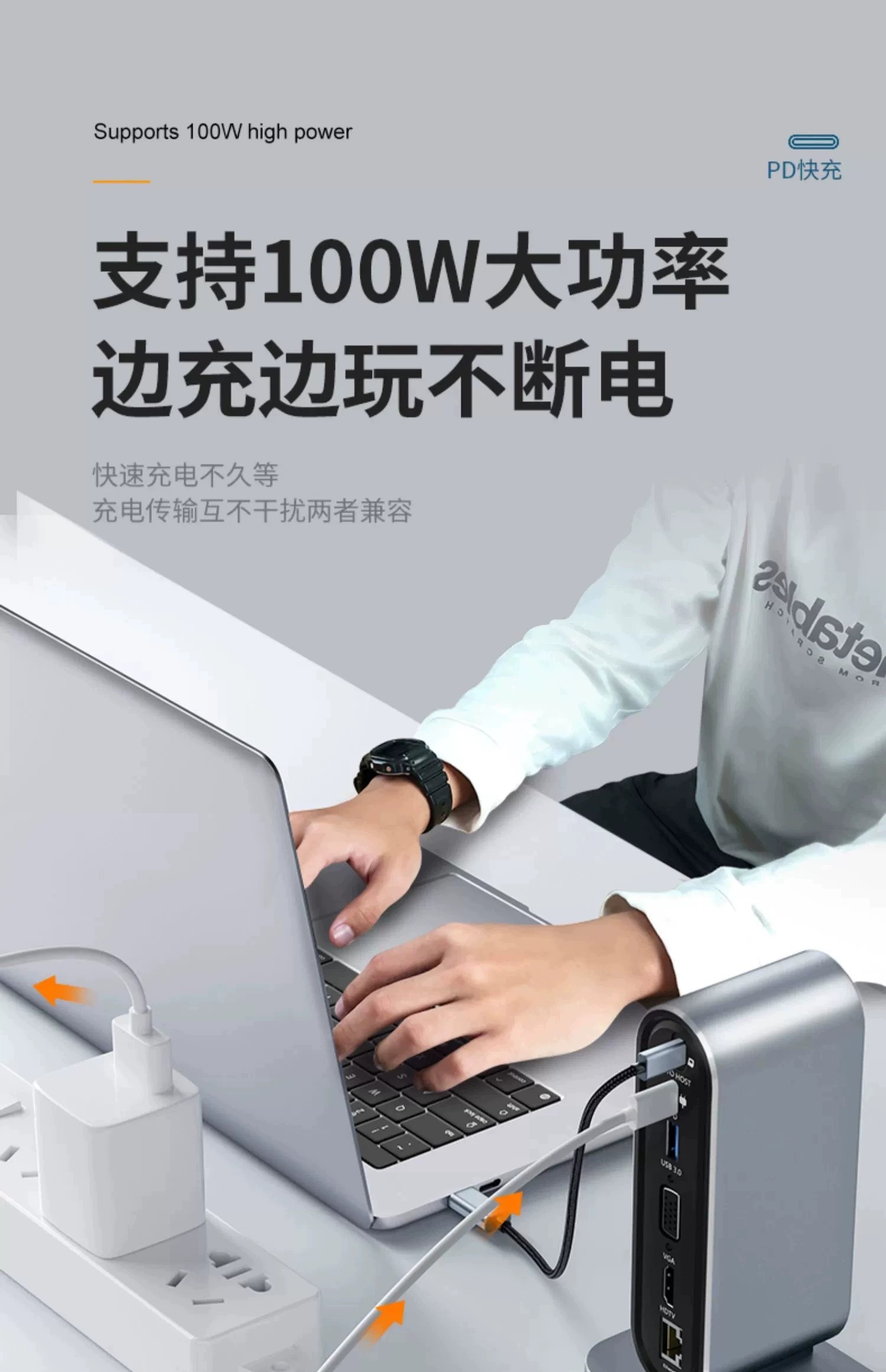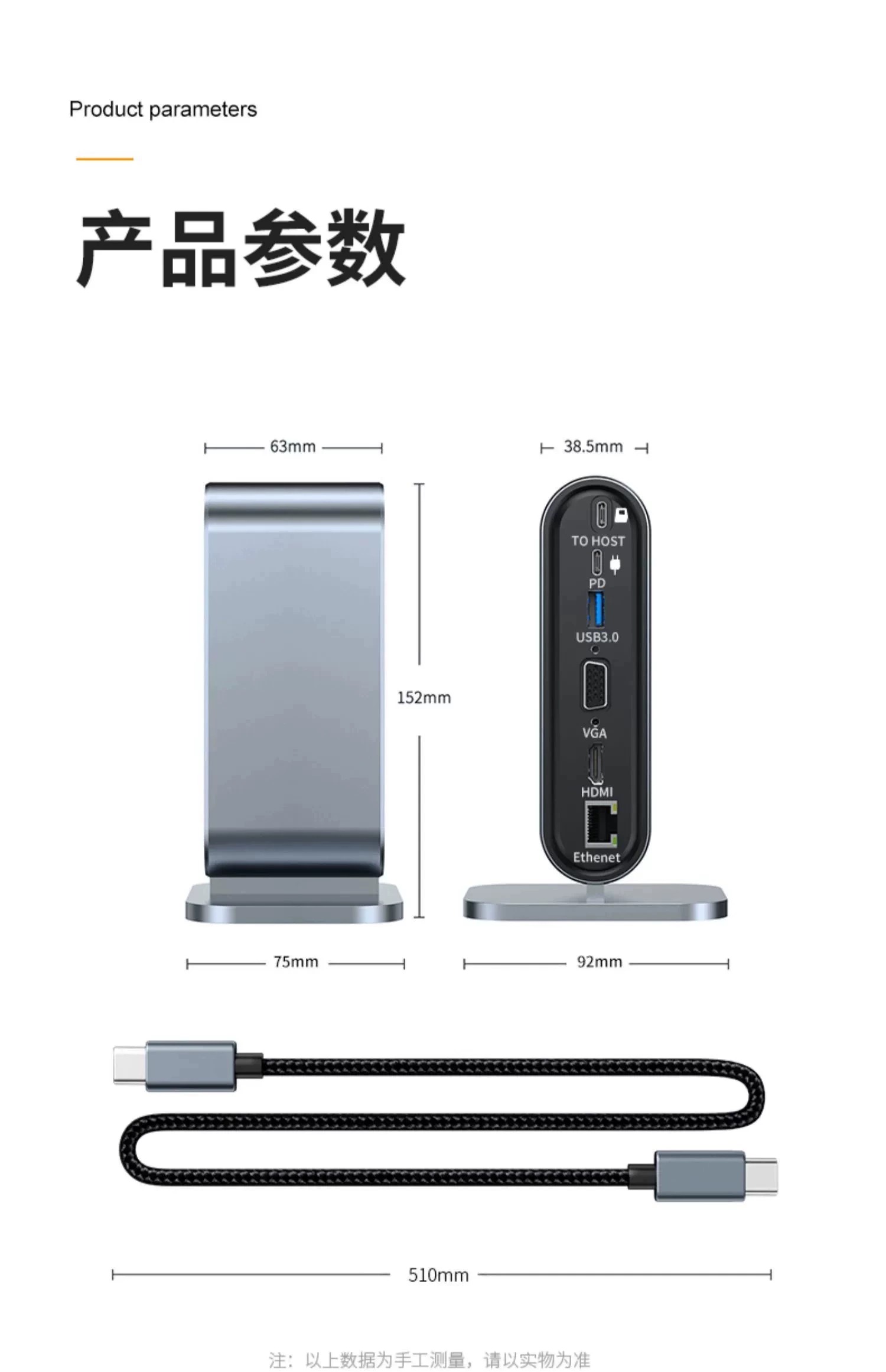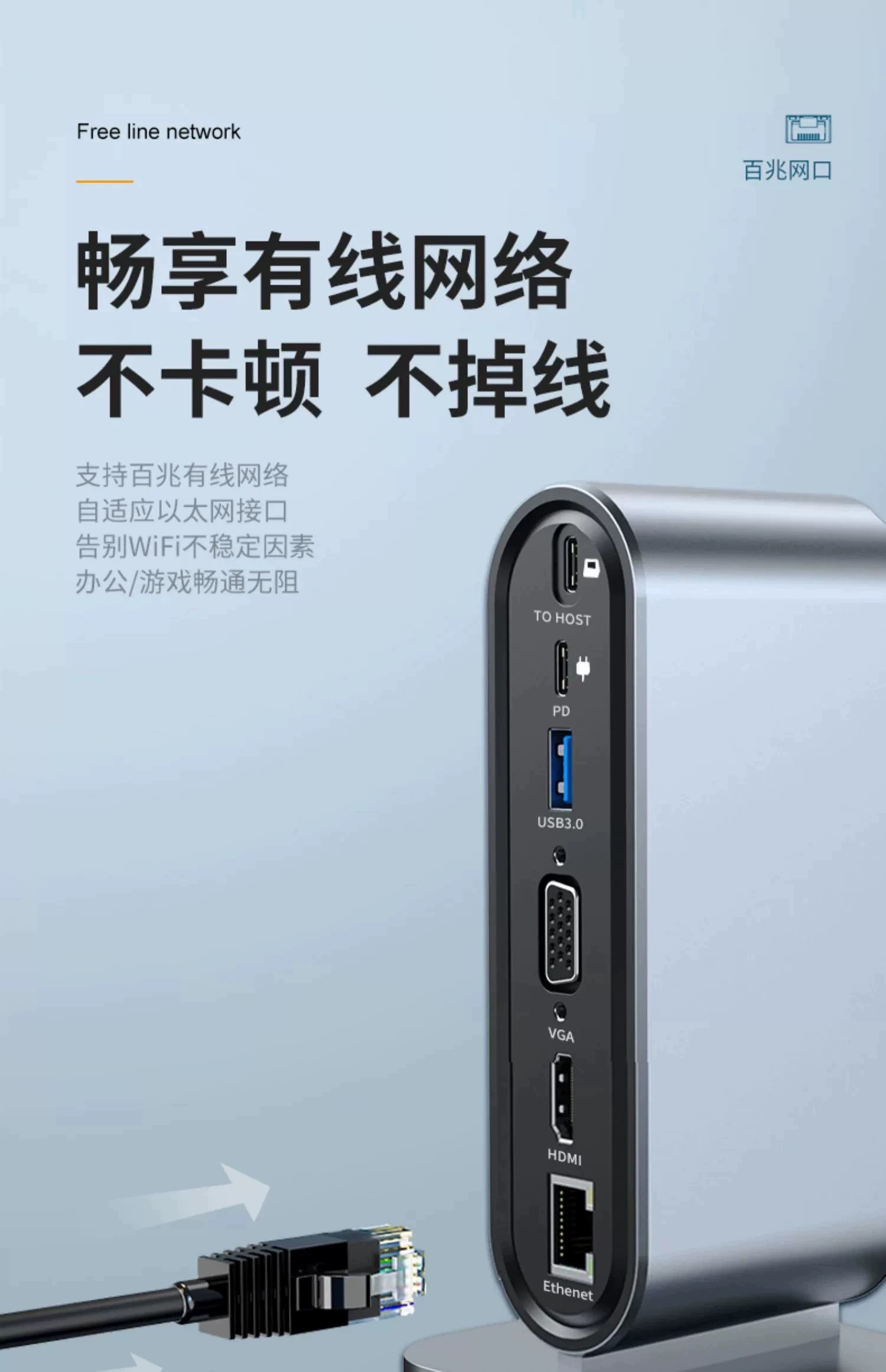 双屏同显【12合1】百兆网口+HDTV++VGA+PD快充+SD/TF+USB3.0*1+耳机孔