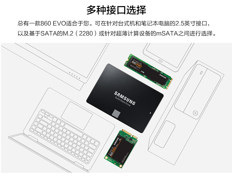 • 三星 MZ-77E1T0 笔记本台式机870EVO 电脑固态硬盘sata固态盘硬1t