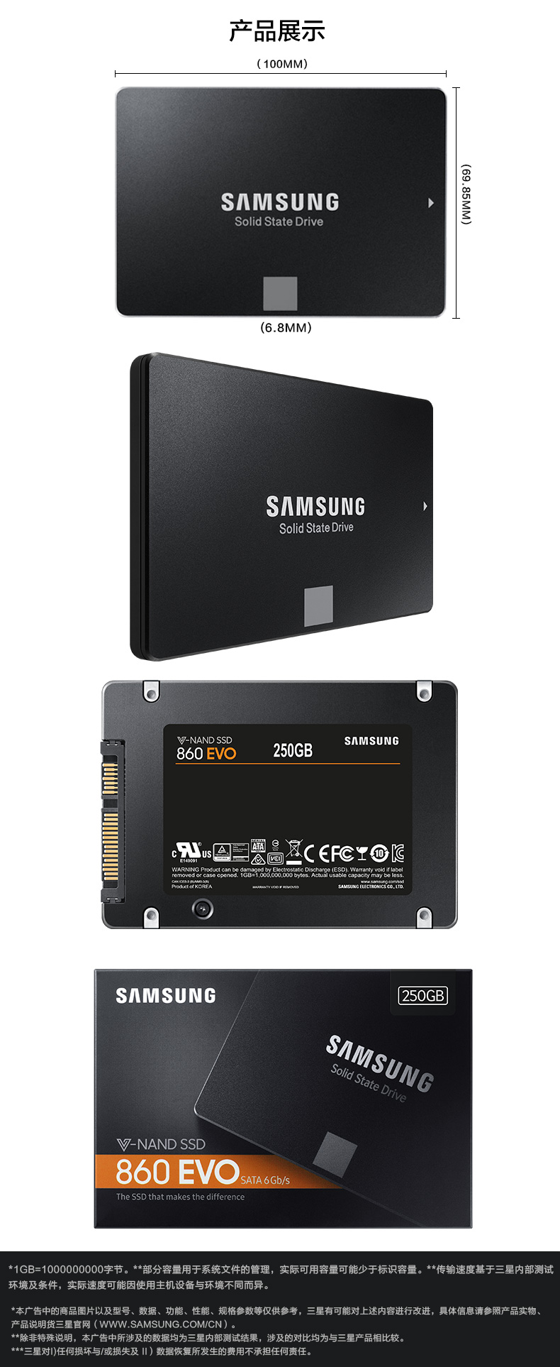 三星 MZ-77E1T0 笔记本台式机870EVO 电脑固态硬盘sata固态盘硬1t