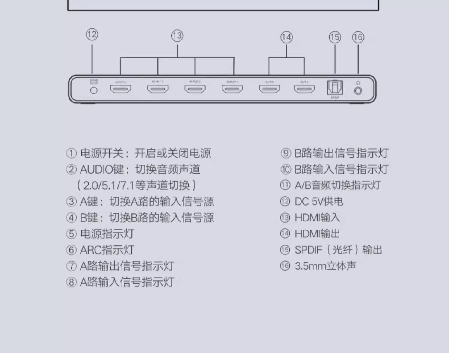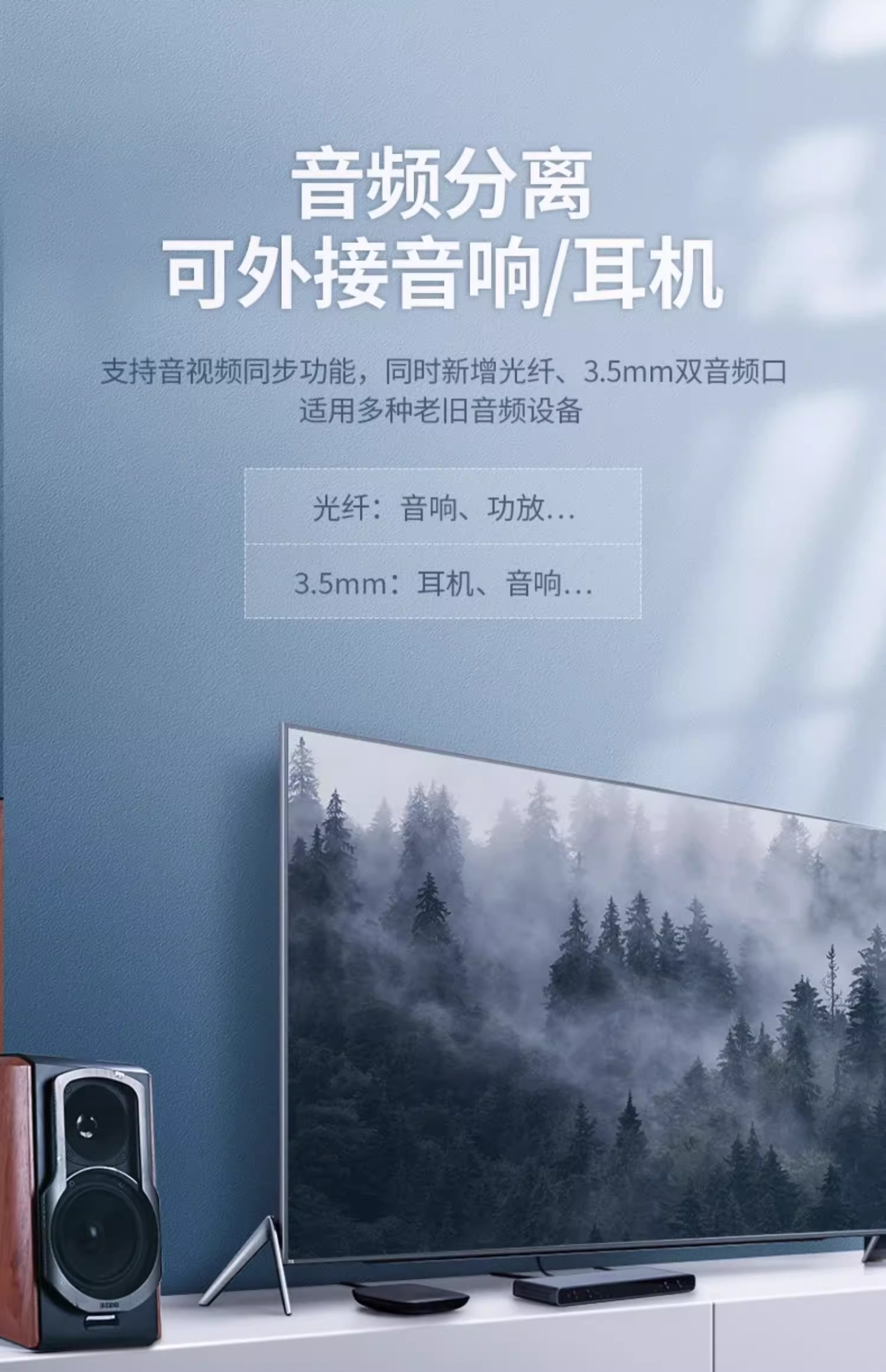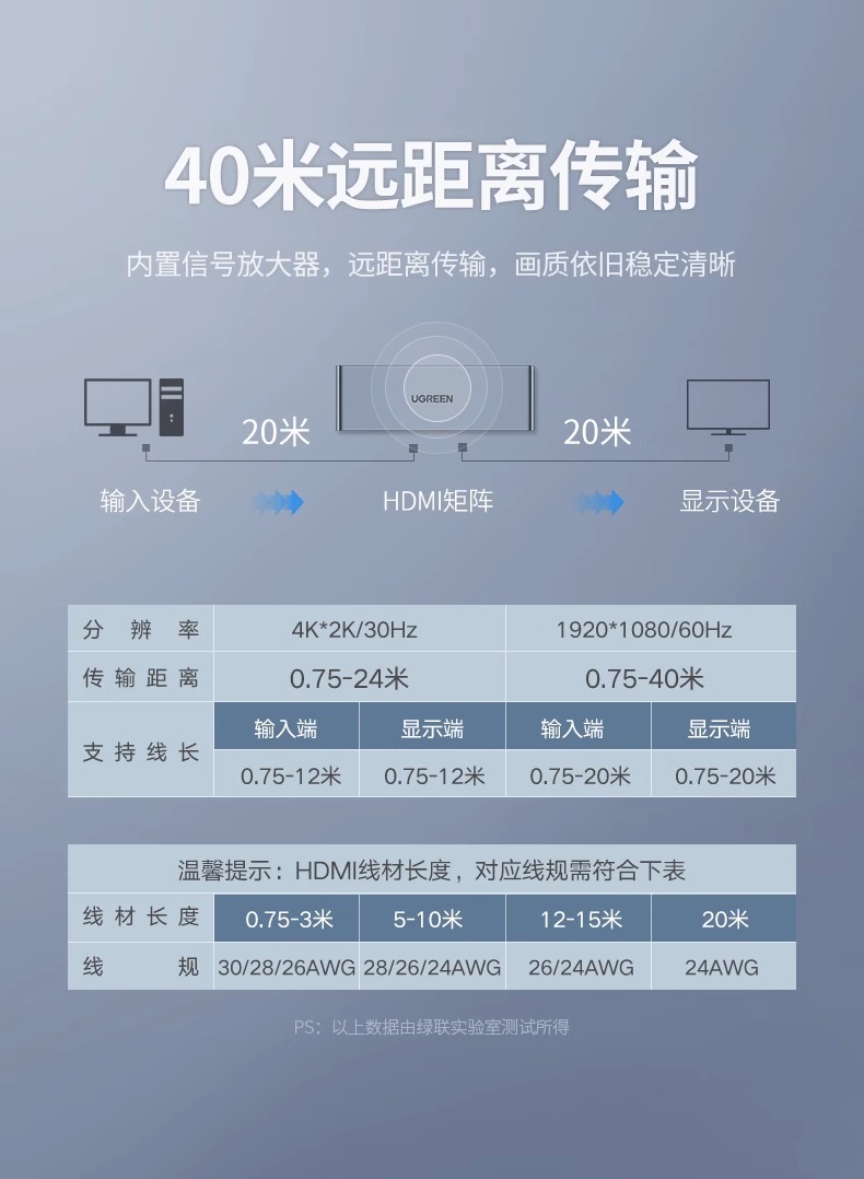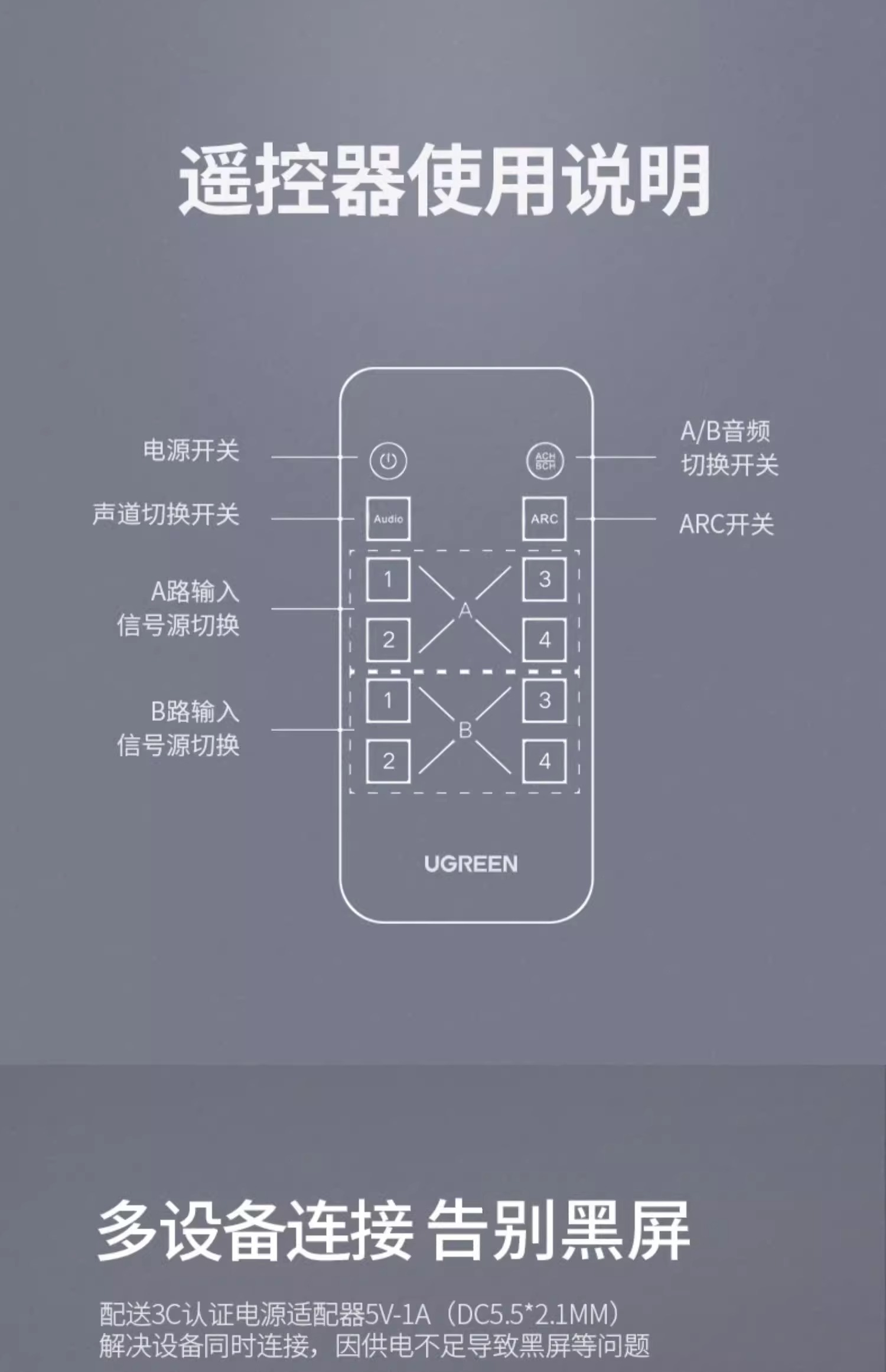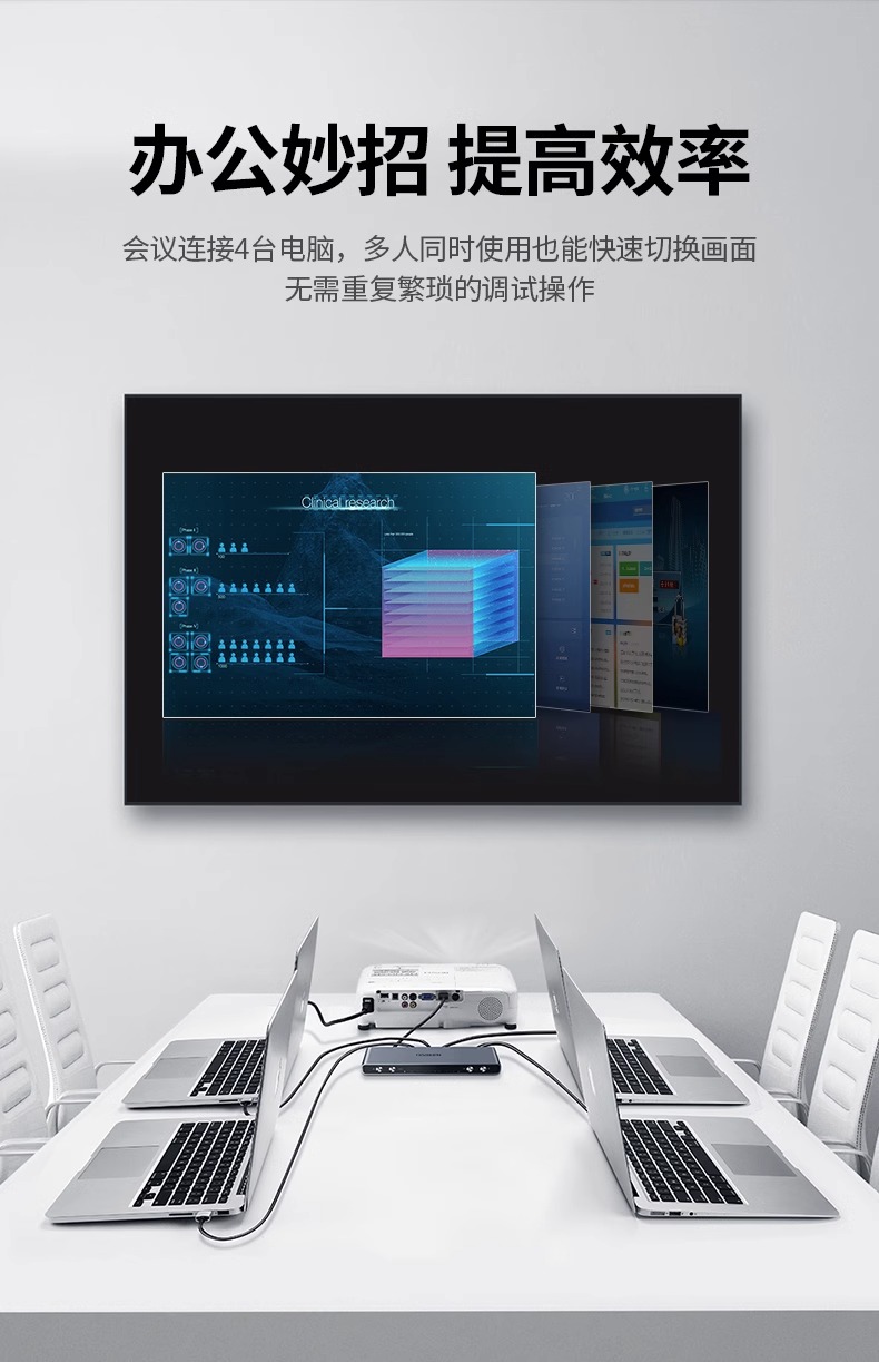• 绿联 hdmi矩阵四进二出带3.5mm音频光纤4K高清线电脑显示器分离分割分线分屏器4进2出同步共享分配转换切换器
