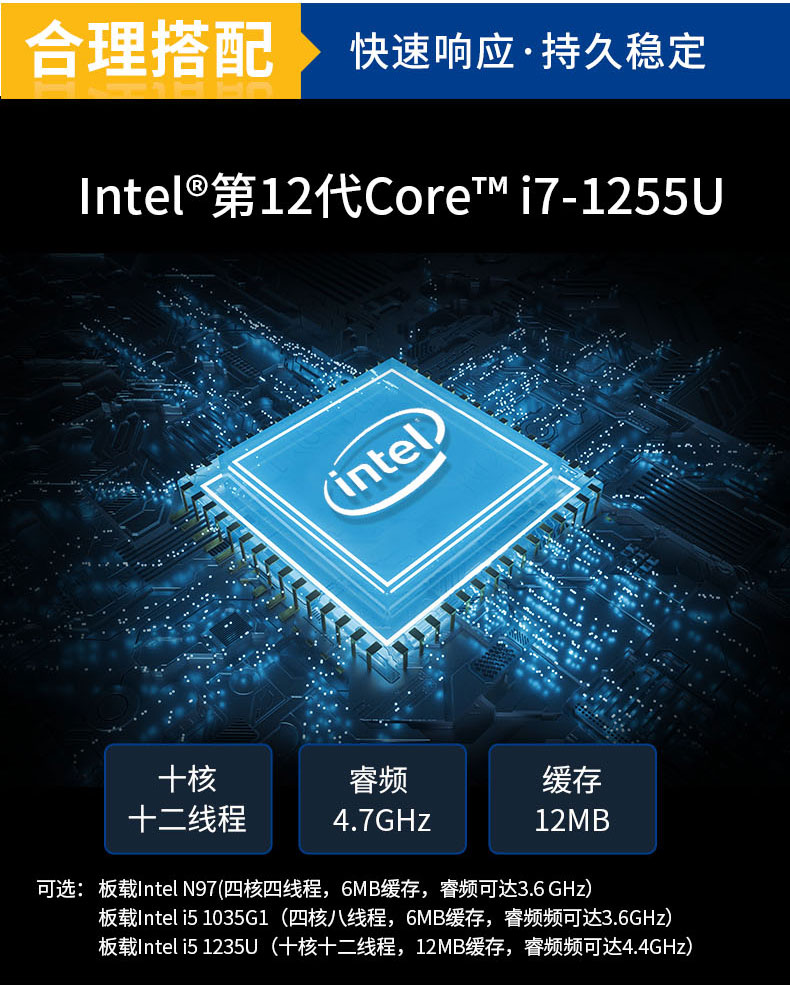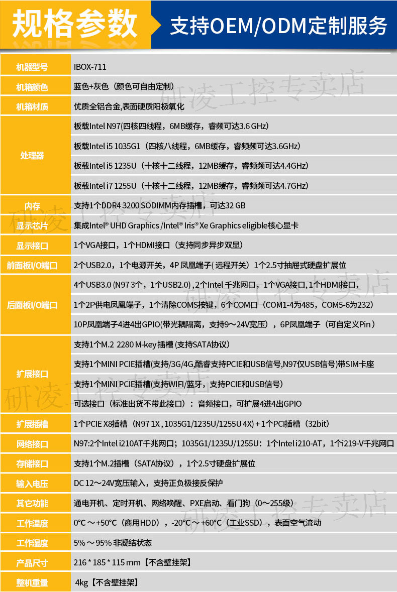 • 研凌711 12代i7 1255U机器视觉工控机N97便携式电脑主机多扩展槽无风扇工业自动化计算机i5 1235U