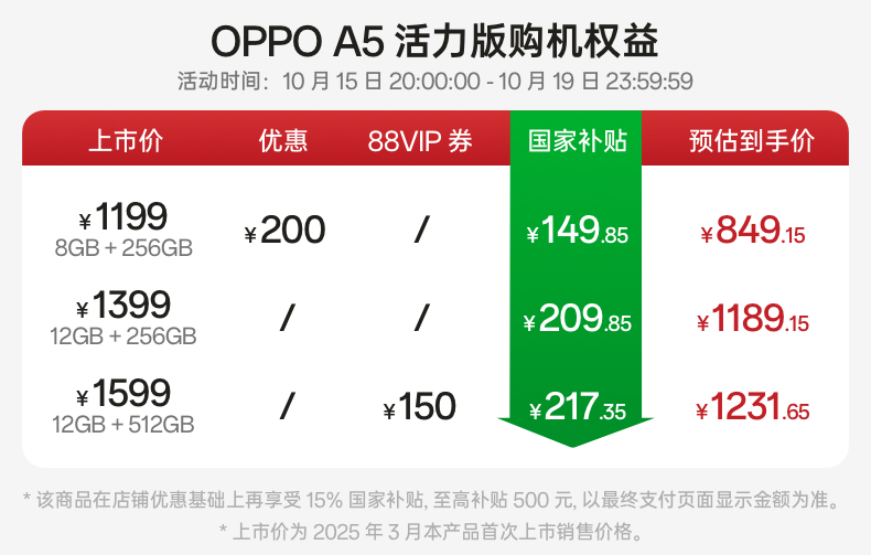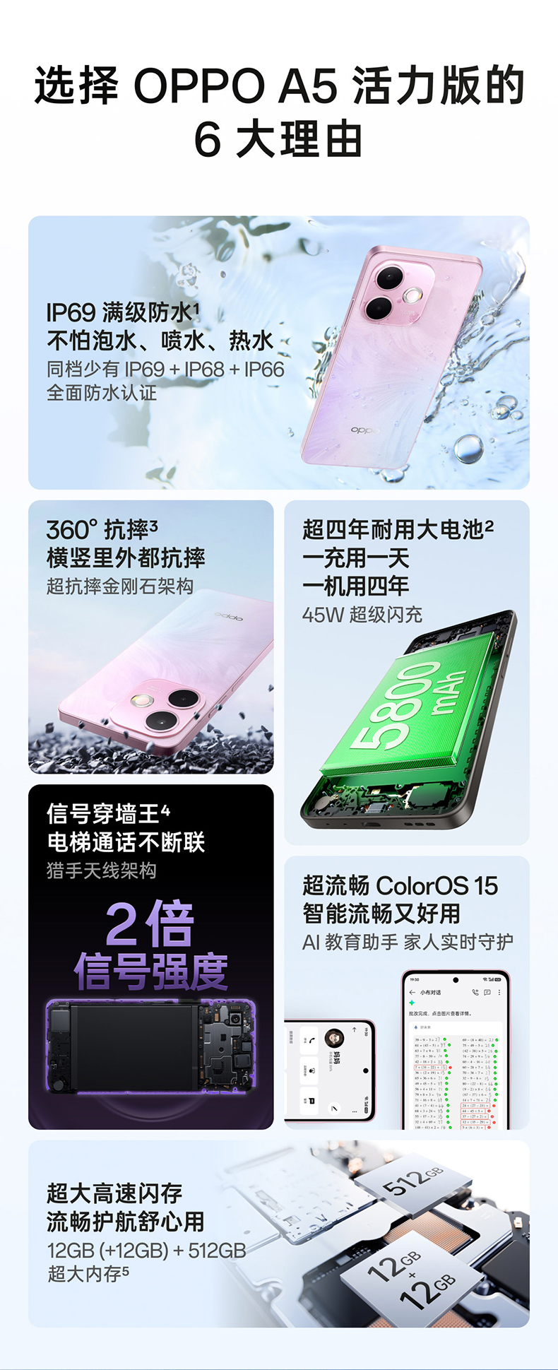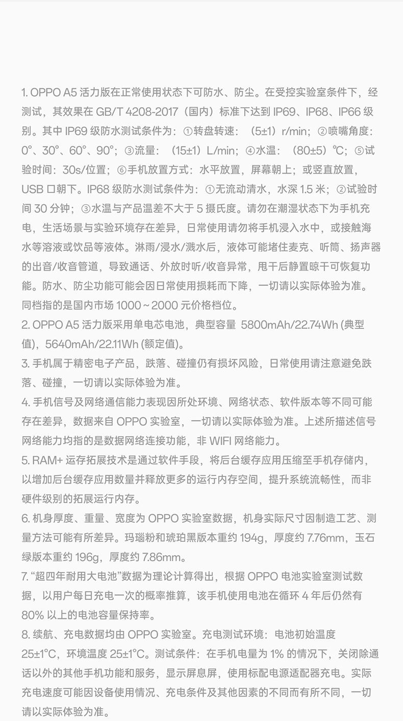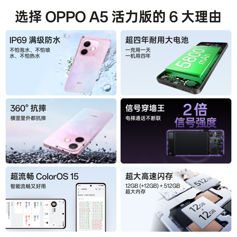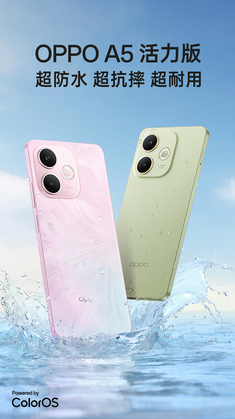 • 【官网】OPPO A5 活力版 5G手机 IP69满级防水360°抗摔超四年耐用大电池政府补贴新款oppo官方旗舰店