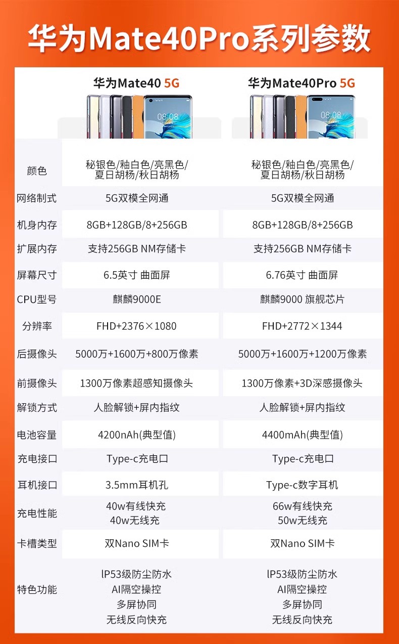 • Huawei/华为 Mate 40 5G全网通双卡双待曲面大屏商务旗舰机皇智能手机
